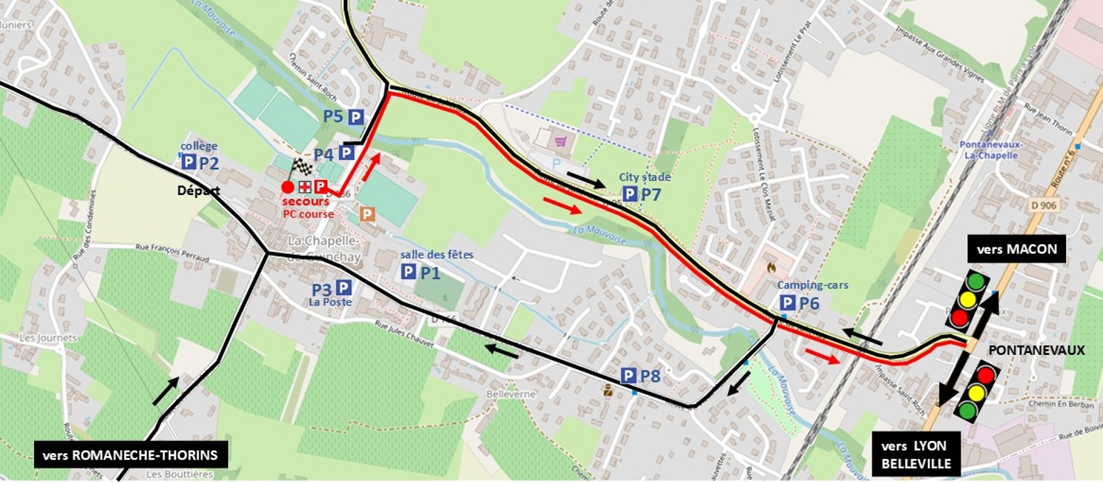 Le lieu de départ et de remise des dossards se situe sur le complexe sportif de la Chapelle-de-Guinchay situé au dessus des terrains de tennis.